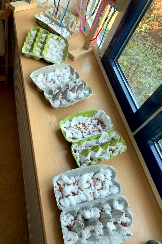 Schon nach kurzer Zeit konnten erste spannende Beobachtungen gemacht werden: Die Kresse begann bereits nach wenigen Tagen zu keimen. Täglich wurde genau geschaut und dokumentiert, wie schnell die kleinen Pflänzchen wachsen. Die Kinder stellten fest, dass die Kresse besonders gut gedeiht, wenn sie regelmäßig gegossen wird und genügend Licht erhält.